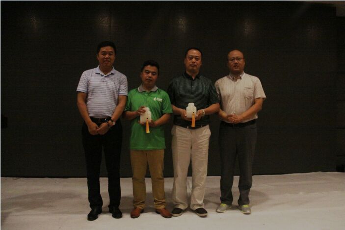会上葛尧伦和张小伟共同为获得“开山建功奖”和“加肥站开拓奖”的合作伙伴刘石勇、刘长青进行了颁奖。来自聊城莘县的刘石勇获得“开山建工奖”,他分享到,在去年11月早早地与刚成立的嘉美特展开合作,之所以选择嘉美特,除了产品质量过硬,值得信赖,最主要的还是服务到位,工作人员每天早早地走向田地,钻进大棚,做示范试验,搞农民会、促销会,也是由于他们辛苦付出、鼎力协助,最终才取得令人满意的销售成绩;获得“加肥站开拓奖”的河北廊坊刘长青分享到,廊坊当地的地理环境优越,有上百个种植园,推广液体肥前景广阔,他看到了市场机遇,也马上付诸于实践。5月13日与嘉美特合作,5月19日在建立第一个加肥站之后立马召集零售商开展专题会议,到5月25日,仅仅用了6天时间,就建立了15个加肥站。行动如此风驰电掣,是因为他坚信水肥一体化是农药发展的重要趋势,价格赢市场只是一时,唯靠服务、创新才能在激烈的市场竞争中站稳脚跟。
