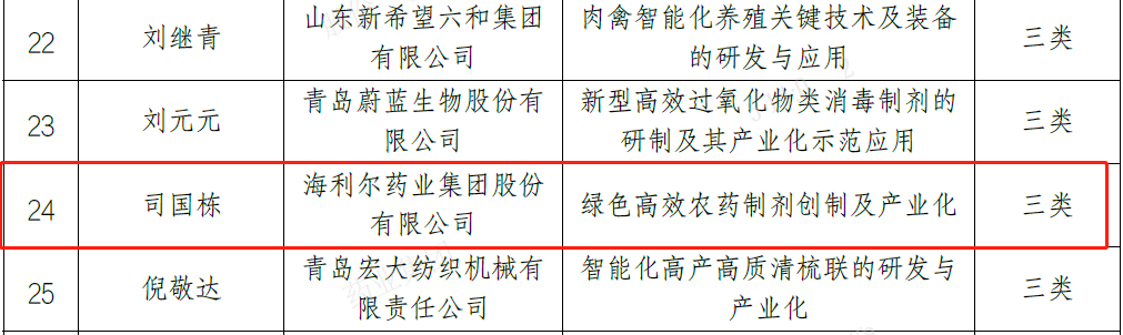 日前,青岛市科技局公布了《2022年度青岛产业领军人才(团队)拟支持名单》,经主管部门推荐、形式审查、答辩审查、现场考察等程序,全市共有55人入选,集团研发中心制剂所二室主任司国栋入选。