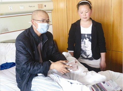 “如果这100元钱能够延长我亲爱的同事一秒钟的生命,那也是非常值得的……”读着同事们写在纸上的祝福话,身患急性白血病的于昆眼泪不停地在眼眶里打转。日前,青岛半岛在线体育股份有限公司工作人员将1500余名职工自发捐献的6万余元爱心款送到了职工于昆的手中(上图),帮助他积极治疗。