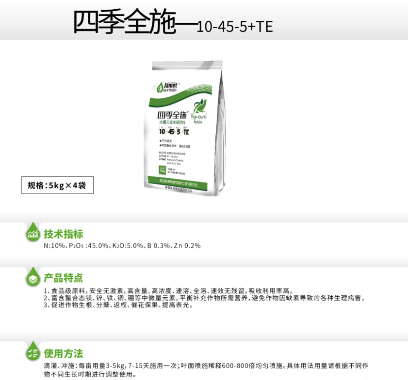 产品名称 四季全施—10-45-5+TE